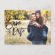 Modernes Pinselskript Save the Date Verlobung Couple Foto Postcard