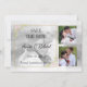 Foto Save the Date. Dies Save the Date ist eine Vorlage für die Braut und den Bräutigam, um sie zu personalisieren. Die Fotos wurden in Quadrate geschnitten. Das Schwarz-Weiß-Foto wurde auf ein 4x6-Foto zugeschnitten. Es hat einen goldenen Rahmen mit rosa Blume.