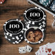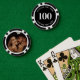 Diese maßgeschneiderten Pokerchips haben auf der Vorderseite eine fettgedruckte Zahl anstelle von Initialen, die mit jeder Zahl bis zu vier Ziffern personalisiert werden können. Die Vorderseite hat einen eleganten schwarzen Hintergrund mit knackig weißen Schriftarten für ein klassisches, auffallendes Aussehen. Die Rückseite bietet Platz für ein Foto, was sie perfekt für Hochzeiten, Männerhöhlen, Junggesellenabschiede oder als ein unvergessliches Geschenk macht. Der gesamte Text, die Zahlen und Details können vollständig an Ihren Stil oder das Thema Ihrer Veranstaltung angepasst werden.