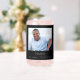 Personalisieren und hinzufügen eines Fotos, Namens und Alter/Datum. Schwarzer Hintergrund, weißer Text.