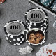 Diese maßgeschneiderten Pokerchips haben eine fettgedruckte Zahl auf der Vorderseite, die mit jeder Zahl bis zu vier Ziffern personalisiert werden kann. Die Vorderseite hat einen falschen metallischen Silberhintergrund, gepaart mit knackigen schwarzen Schriftarten für ein elegantes, modernes und poliertes Aussehen. Die Rückseite bietet Platz für ein Foto, was sie perfekt für Hochzeiten, Männerhöhlen, Junggesellenabschiede, Spielabende oder als ein unvergessliches personalisiertes Geschenk macht. Aller Text, Zahlen und Design-Details sind vollständig anpassbar, um Ihrem Stil oder dem Thema Ihrer Veranstaltung gerecht zu werden.