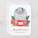 Foto Snow Globe Urlaubskarte. Diese bezaubernde Weihnachtskarte verfügt über eine Schneekugel mit einem runden Bild zum Personalisieren. Niedliche handbemalte Aquarellspielzeuge und Geschenke sind rund um die Schneekugel mit dem Jahr. Der Rücken hatte eine passende Darstellung eines Muskelspielzeugs mit Text zur Personalisierung.