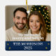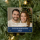 Freuen Sie sich auf moderne Eleganz und ein individuelles Dekor in der Keramik. Die Anlage wurde mit einer tiefen marineblauen Band entworfen, die durch schimmernde Goldschneeflocken hervorgehoben wird. Sie verbindet Eleganz mit saisonalem Charme. Ihr Foto wird über der Band präsentiert, während eine saubere Typografie Ihren Familiennamen oder festlichen Gruß hervorhebt. Als zeitloser Sake oder nachdenkliches Urlaubsgeschenk bietet dieses Ornament eine stilvolle Alternative zu traditionellen roten und grünen Designs.