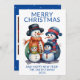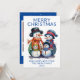 Foto Snowman Familie Party Weihnachtskarte in blau für einen festlichen Urlaub Gruß an Familie und Freunde.