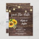 **DIES IST EINE PAPIEREINLADUNG. OPTIONELLE UMGEBUNGEN. FÜR DEN THICKER, DIE KARTE, DIE KARTENBESTANDVERSION, GEHEN SIE HIER: https://www.zazzle.com/z/acgpvnom?rf=238937196885903396 Rette Geld auf formelle Einladungen mit dieser kleineren Einladung, die eine Option für Umschläge hat. Holen Sie sich Ihre Gäste für die phantastische Hochzeit mit Sonnenblumen, Foto, Holz und Streichellichter Speichern Sie die Daten. Woll einen Kartenbestand, größere Version? Karo unsere Hochzeitskollektion für Karten aus. https://www.zazzle.com/collections/sunflower_wood_string_lights_invitations-119496189672050299?rf=238937196885903396