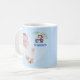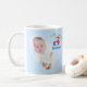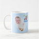 Schönes personalisiertes Foto halten die Tasse der kleinen Jungen 1. Weihnachten. Personalisieren Sie es mit einem Foto Ihres Kindes und seinem Namen, behalt eine Aufzeichnung von ihm, während er aufwächst. Blau
