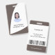 Sauberes Abzeichen von Mitarbeitern mit Foto und Text in moderner gebogener Standarddarstellung in Schwarz, Braun und Weiß