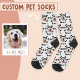 Foto und Name des Hundes, mit Knochen- und Paw-Druck auf weißen Socken