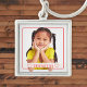 Foto und Name in Weiß mit rotem Rahmen Schlüsselanhänger
