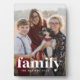Behalt eine ständige Erinnerung von Ihrer wichtigsten Priorität in der Nähe mit dieser süßen Familiensake-Plakette. Fügen Sie ein beliebtes vertikales Foto hinzu, mit "Familie" in weißer Schrift und Ihrem Familiennamen.