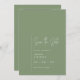 Eine einfache moderne Weise grüne Hochzeit speichern das Datum Ankündigung. Die Überschrift "Save the Date" in weißem, modernem, handgeschriebenem Schriftart. Fügen Sie auf der Rückseite Ihre Foto- und Hochzeitswebsite mit QR-Code hinzu.