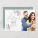 FOTO DANKE | Fügen Sie Ihr Foto - Moderne Aquarellfarbe Eukalyptus Foliage in staubigen Salbei- und Rosatönen mit Aquarellblau hinter - Gratis Rückfärbung. Eine Kombination aus moderner Skriptkalligraphie und einem minimalistischen, zeitgenössischen Text-Layout macht es zu einer trendigen Hochzeitssuite. Design erstellt für TheBarefootBride™ durch © WhimsicalArtwork™. Das ist Teil einer Sammlung von Hochzeitsartikeln mit passendem Hochzeitszubehör, Babydusche und anderen Veranstaltungsartikeln. Kontaktieren Sie uns, wenn Sie Hilfe benötigen.