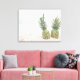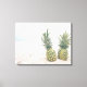 Leinwand mit einem Foto mit Ananas, das auf einem Sandstrand sitzt.