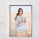 Teilen Sie die Freude an einer High School oder Uni-Abschluss für sie mit diesen individuellen Foto-Marineblockaden blau, weiß und rosa Ankündigungen. (IMAGE PLACEMENT TIP: Eine einfache Möglichkeit, ein Bild genau so zu zentrieren, wie Sie es gewollt haben, ist es, es einzuschneiden, bevor Sie es auf die Zazzle-Website hochladen.) Diese formale Stilvorlage enthält die Namen von Eltern und Absolventen sowie alle von Ihnen gewünschten Formulierungen, wie Party Einladungen, Sonderehren, Studientitel, Lieblings-inspirierendes Zitat, Kontaktinformationen für Absolventen, künftige Bildungen oder neue Stellenangebote. Der gesamte Text ist einfach zu personalisieren. Das Design besticht durch einen modernen dunkelblauen Hintergrund, die vergoldete Goldfolie der Imitate und die Mörserpappe, die elegante Schriftzeichen-Kalligraphie, die traditionelle Typografie und ein Foto Ihrer Wahl, wie z.B. ein Seniorbild oder ein Bild aus der Anlaufzeremonie. Bitte beachten Sie, dass Rose Gold in Druckfarbe ist, nicht in Metallic. Diese Abschluss-Ankündigungskarten sind eine schicke und trendige Art, Ihre Feier mit Freunden und Familie zu teilen. Herzlichen Glückwunsch an den Absolventen!