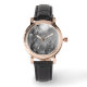 Uhr, Klassische Damenuhr mit schwarzen Lederarmband