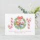 Diese Karte ist ideal, um während der Ferienzeit fröhliche Grüße zu versenden. Dieses schöne Design mit handgemalten Wasserfarben, roten und weißen Süßspeisen und einem grünen Kranz mit einem schönen roten Bogen. Auf der Rückseite der Karte befindet sich ein klassisches rotes Polka-Punktmuster. (Personalisieren Sie Foto, Nachricht und Jahr.)