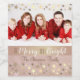 Elegant, funkelnd, Rose Gold, glänzende Sterne mit inspirierendem Zitat: Sei fröhlich und hell, Weihnachtsweinlabel mit familiärem Foto.