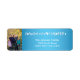Weihnachtsblau-weiße Rücksendeadressen-Aufkleber mit wechselndem Text und familiärem Foto - Sie können Ihre hinzufügen. Fotografie © Storytree Studios, Stanford, CA