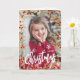 Eine Weihnachtskarte für Festtage Foto mit einem stilvollen Rahmen aus goldenen Mistelästen und Blätter und kleinen roten Beeren. Personalisieren Sie das Foto auf der Kartenvorderseite mit einem Foto Ihrer Familie, der Kinder oder eines Haustieres. Und das Rot mit golden mistletoe Zweigen Bilderrahmen wird Ihr Weihnachtsbild bedecken. Die weiße Typografie mit "Frohe Weihnachten" verleiht der Urlaubskarte ein festliches Aussehen. Fügen Sie Ihren persönlichen Text hinzu und erstellen Sie eine personalisierte, schöne Urlaubskarte mit 1 Foto.