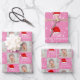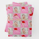 Baby`s erste Weihnachts-Foto Weihnachtsmannmütze Snowflake Pink Wrapping Paper Sheets. Niedliches Weihnachtsdesign mit roter Weihnachtsmannmütze, Schneeflocken, einem Babynamen in einem weißen Drehbuch, einem Baby-Foto - personalisieren Sie mit dem Namen und Foto Ihres Babys.