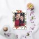 Diese elegante Weihnachtsfotokarte besticht durch einen schönen Rahmen aus handgemalten Aquarellen, Blume und Beeren mit einem echten Goldrahmen und einem eleganten Drehbuch. Auf der Rückseite befindet sich das gleiche Kunstwerk mit einem zweiten Foto und Text zur Personalisierung Ihrer Nachricht. Finden Sie passende Artikel in der Weihnachtsfeiertage Poinsettia Collection.