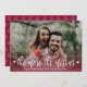 Weihnachtskarten für die Schwangerschaft im Foto Erwartung der Eltern! Modernes, weißes Schriftzeichen mit Schriftzeichen "je mehr der Größere" Text mit roter Gradientenkarte, um Ihre glücklichen Nachrichten mit Familie und Freunden in der Feriensaison zu teilen. Auf der Rückseite Schneeflocken auf rotem Hintergrund. Sie können das Design personalisieren, indem Sie den Beispieltext und das horizontale Foto ersetzen. 3344