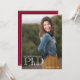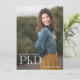 Eine Ankündigung des Foto-Doktoranden-Abschlusses, die Ihren Namen, das Klassenjahr, eine Dankeschön und vieles mehr enthält. Die Vorderseite der Ankündigung zeigt ein vertikales Foto. Die andere Seite hat einen bordeauxfarbenen Hintergrund. Tauschen Sie das Foto aus, passen Sie die Wörter an, fügen Sie die Ankündigung in Ihren Warenkorb, und lass jedem wissen, dass Sie etwas Großes erreicht haben. <i>Fotografie © Storytree Studios, Stanford, CA</i>