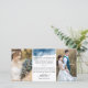Erzählen Sie Familie und Freunden mit dieser eleganten "We got Verheiratet" Two Foto Announcement Card die großartige Neuigkeit Ihrer Hochzeit. Fühlen Sie sich frei, um Ihre eigene Nachricht, unsere ist nur ein Beispiel. Einfaches und modernes Design mit blauem Aquarell und handgeschriebenen Kalligrafiedetails. Rückseite der Karte mit anmutigen blauen Aquarellfärbung und blauen blumengeschmückten Details, die Braut und Ziersträucher mit vollen Namen umhüllen. Blume und Blätter in einer Kombination aus staubblauen, marineblauen, weißen, grauen und grünen Salbeitönen.
