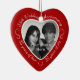 Dieses romantische Rot-Weiß-Ornament lasse Ihnen, Ihr eigenes Foto in die Herzform zu setzen. Erschaffen Sie einen besonderen Sake für Ihren Liebsten, um eine lange und glückliche Ehe zu feiern. Der rote Rahmen des Herzens hat einen weißen Schriftzeichen, der auf der Spitze den Satz "35. Hochzeitstag" und auf beiden die Worte "35 Jahre Liebe", "35 Jahre Freude" sagt. Hübsche Rollen und ein Herz aus der Liebe vervollständigen das Design, und das Foto des Paares wird durch einen weißen Perleneffektrahmen gerahmt. Fügen Sie der Rückseite eine persönliche Nachricht hinzu, um einen einzigartigen und besonderen Speicher zu erstellen. Sie können auch das Jahr oder ein Datum hinzufügen, wenn Sie möchten.