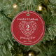Garnet feiert 2 Jahre Liebe Hochzeitstag und Foto zurück Ornament. Einfache Kontur Herzstein Linie Grafik dunkelrot und weiß 2nd Garnet Hochzeitsanfang Schmuck. Passen Sie Ihr Ornament mit Ihren eigenen Namen, den Namen, den Terminen zum Hochzeitstag und einem besonderen Foto auf der Rückseite an. Das 2. Jubiläum ist mit Garnet assoziiert und das Herz symbolisiert Liebe. Weitere passende Gegenstände und Hochzeitsfeiern sind erhältlich. Grafik und Design von Sarah Trett für www.mylittleedenweddings.com auf Zazzle.