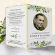 Dieses folkloristische Beerdigungsprogramm besticht durch natürliche, grüne Aquarelltöne, die eine aufregende Lebensfeier ermöglichen. Die Vorderseite ist so konzipiert, dass sie beidseitig bedruckt und flach geliefert wird, damit Sie sie falten können, und zeigt ein Lieblingsfoto in den ovalen Rahmen des Goldenen Effekts. Inside kann mit der Reihenfolge des Dienstes oder was Sie wollen bearbeitet werden. In einer schwierigen Zeit eignet sich dieses schöne und graziöse grüne Blattdesign mit goldenen Rändern für eine Feier des Lebensdienstes, eine kirchliche Gedenkstätte oder eine humanistische Zeremonie. Der Goldfolieneffekt der IMITATE ist bedruckt und NICHT metallisch.