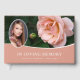 Elegantes, blumengeschmücktes Gästebuch mit rosa Rosenaufführung zum Foto. Individualisieren Sie sich ganz einfach auf jeden Anlass.