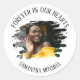 Ein schlichter und eleganter Grabsticker personalisiert mit Ihrem Lieblingsfoto Ihres Liebsten und der Typografie, die "ewig in unseren Herzen" und ihren Namen lautet.
