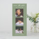 Eine moderne minimalistische Salbei und Foto Ständer Stil Hochzeit speichern das Datum Ankündigung. mit Platz für 3 Ihrer Lieblings-Fotos und QR-Code für Ihre Hochzeitswebsite.
