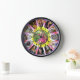Die bunte Collage-Uhr in Krawatte-Färbung zeigt 13 beliebte Familienfotos in kreisförmiger Form, mit einem Foto in der Mitte und 12 in der Mitte, zeitgleich mit den Uhrzeiten. Jedes Foto hat einen schwarzen Rand, und es gibt auch schwarze Zahlen mit kleinen Sonnenbildern zwischen ihnen. Der Hintergrund besteht aus Retrotiedye mit verblassenden Wirbel lila, rosa und rot an den Kanten, die sich langsam in Gelb und Orange in der Mitte verändern. Verwenden Sie die einfachen Vorlagen, um Ihre Bilder hinzuzufügen. Alle Fotos füllen automatisch die Frames aus. (Die Fotos der Stichprobe sind alle quadratisch). Bitte beachten Sie, dass Teile Ihrer Fotos wahrscheinlich zugeschnitten werden, um die Formen zu erstellen. Weitere lustige Collagen finden Sie in unserem Shop: https://www.zazzle.com/store/picturecollage