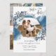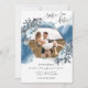 Herrliche vier Foto, blaue Aquarellfarbe und blauer Blumen und Blattwerk Hochzeit Sichern Sie die Datumskarte. Vorne ein ansprechender geometrischer Ruhm, umrahmt von Blume und Blattwerk, mit einem Bild innen und kaskadierend blauer Aquarellfärbung auf der Rückseite. Verwendung moderner handschriftlicher Kalligrafiedetails. Auf der Rückseite drei Foto Collage mit elegantem kleinen Rahmen mit Ihren Initialen verbinden alle drei Fotografien zusammen. Teil unserer "Rustic Blue Mountains Collection" mit einer Vielzahl von Produkten zur Koordination.