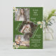 Personalisierte 4 Foto Collage Graduation Party Ankündigung mit hübschem grünem Hintergrund. Geprägt mit süßen Aquarellfarben, weiße Molkereien. Einfach und süß. Fügen Sie Ihre speziellen Fotos hinzu, um Ihre eigene persönliche Ankündigung zu erstellen. Andere Farben und Stile verfügbar.
