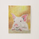 ein Schwein, das für sein Bild, auf einem Puzzlespiel aufwirft!