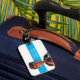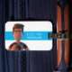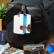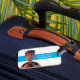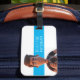 Gepäckmarke für Fotografen mit Charakter, der eine Kamera hält. Alle Details und Farben können leicht geändert werden.