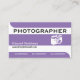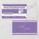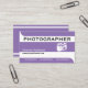 Fotografie-Kamera lila und weiß berufliche moderne, auffällige Visitenkarte, die den Text "FOTOGRAFIE" und eine Fotokamera in Weiß auf lila und weißen Streifen. Eine perfekte Wahl für Fotografen oder Fotografen.