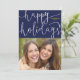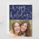 Ein skurril modernes Design, das glückliche Ferien in einer hellgelben und marinebürdigen Farbpalette wünscht. Personalisieren Sie dieses Design mit Ihrem Foto, Gruß und Namen, um es zu Ihrem eigenen zu machen. Die Farbe des marinen Hintergrunds kann auch in den Einstellungen "Anpassen" geändert werden! Fotografie von Antonio Guillem