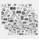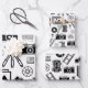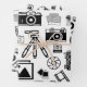 B&W Musterdesign mit Fotozubehör Illustrationen wie Kameras, Filme und Stativ. Die beste Art, ein besonderes Geschenk für einen Fotografen zu packen!