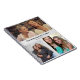 Eine schöne Anordnung von vier Fotos der Familie, die in 3 Abschnitte unterteilt sind, mit einem waagerechten Rechteck auf der oberen Seite und zwei vertikalen rechteckigen Porträtrahmen auf der rechten Seite mit einem Text auf der unteren Seite. Personalisieren Sie es mit Ihren eigenen Fotos und Texten. Perfekt für Ihre Lieben ein maßgeschneidertes Geschenk.