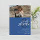 Eine moderne, kühne Namen Hochzeitseinladung auf Hochzeitsfarbe des Jahres blau mit individuellen Namen mit handgeschriebenem Kalligraphie und Serif-Schriftart, 2 Namen , zwei Stile. Alle Texte, Namen und Hintergrundfarben sind mit 2 Fotos anpassbar. Eine einfache und minimalistische Einladung, fügen Sie Ihren qr-Code für uAwg, Details und alles in einem Einladen.