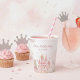 Complement your royal table setting with these exquisite paper cups, designed to bring a touch of magic to your little girl's 4th birthday celebration. Each cup features a beautifully detailed watercolor fairy tale castle and a whimsical unicorn, perfectly capturing the essence of a magical kingdom. The soft pastel pink tones and delicate accents align seamlessly with your princess theme, creating a cohesive and enchanting look for all your party beverages.