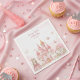 Add a touch of royal elegance to your party table with these premium paper napkins, specifically designed to coordinate with a magical 4th birthday theme. Featuring a beautiful watercolor illustration of a pink fairytale castle and a whimsical unicorn, these napkins bring the enchantment of a princess's kingdom to every seat. The delicate pastel pink tones and soft cloud motifs perfectly match your "Four Ever A Princess" decor, ensuring a cohesive and sophisticated look for your celebration.