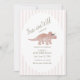 This Four-ever Wild dinosaur birthday invitation is a beautiful choice for a fourth birthday celebration. Featuring a soft watercolor dinosaur illustration, pastel stripes, and elegant typography, this design offers a classic and timeless look.