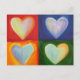 Gemälde von vier weißen Herzen in roten, blauen, grünen und gelben Rechtecken, die alle wie die Liebe aus mehreren Quellen zusammenkommen, aber auch getrennt sind. Die herzlichen Verbindungen der Liebe halten uns in Freude und Feiern zusammen. Es ist auch Liebe, unsere Soule für die Herausforderungen des Lebens zu stärken. Personalisieren Sie die Herzen Postkarten mit Ihrem eigenen Text und Bildern mit der Option Anpassen. Machen Sie besondere Valentintagskarten, Dankeschön für Hochzeiten, Verlobung-Rett-the-Date, Geburtshilfeankündigungen für Kinder oder Ihre speziellen Postkarten für die Liebe! Gewinne aus diesem Verkauf unterstützen die gemeinnützige 501(c)3 DonnaBellas Angels. Weitere Informationen unter<a href="http://www.donnabellasangels.org/art/hearts/index.html" target="_blank" >()<strong>www.donnabellasangels.org</strong>())