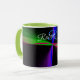 This geometric coffee mug features a custom colorful four-way wave theme modern design. Text customization and additional mug colors features are available.