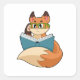 Fox as Nerd with Book & Glasses Quadratischer Aufkleber